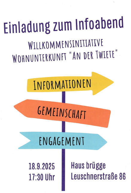 Wir möchten zusammen mit Ihnen eine Willkommensinitiative für geflüchtete Menschen, die bald in der neuen Unterkunft einziehen, gründen. Gemeinsam werden wir überlegen, wie wir eine freundliche und offen Atmosphäre im Quartier schaffen können.